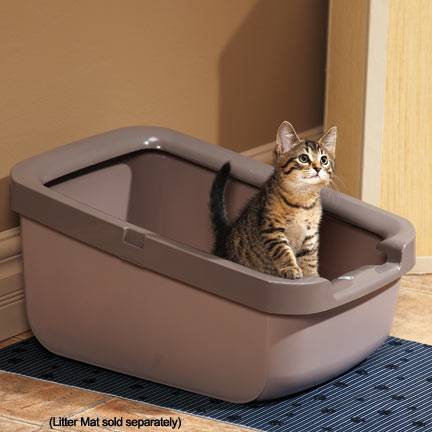 Another box I really liked is the Catit Cat Pan with Rim; it has a generous 22.4 in. x 15.3 in. pan. The rim of the Catit is great to keep litter liners in place and it also has a lower entry point. For single- cat households with a small feline, there is the circular Booda High-Back Cat Litter Pan with a ramp. It’s ideal for placement in a corner.