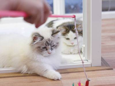 These tiny little battery-operated toys mimic the movements of real prey encouraging cats to chase them, pounce and leap about. There are a variety of shapes – bird, mouse, caterpillar, a cute ladybug. They are small enough for cats to pick up with their paws and fling around. Once back on the ground, they set off on their own again. Petlinkssystem.com