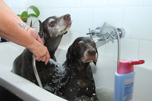 Absorbent towels and force dryers make post-bath grooming services quicker and more comfortable, particularly for the dog’s eyes and ears, which require gentle care.