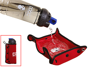Don’t forget the water. This is very important for you and your pets. Choose from collapsible bowls like these from Kurgo or Doog’s new 3-in-1 portable bowl (image left) that carries 600ml of water for you and your pet.