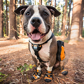 Speaking of staying cool, please don’t forget to protect those paw pads. There are dozens of places that carry different styles of dog boots, and it will all depend on the strength and coverage you need, as well as your location. If you’re in an area like Arizona, you’ll need the extra protection dog boots with hard soles offer. Check out the Step and Strobe Boots from Kurgo (image left) or if you’re in a rocky climate where good traction is a must, see the Grip Trex or Summit Trex boots from Ruffwear.